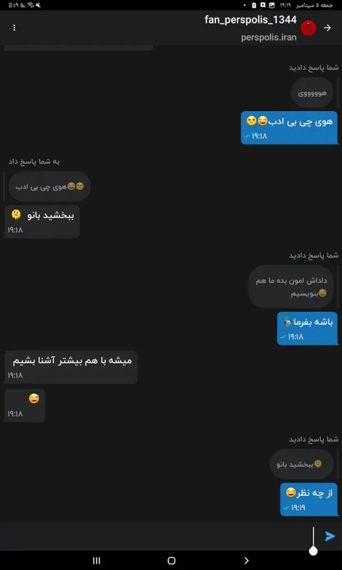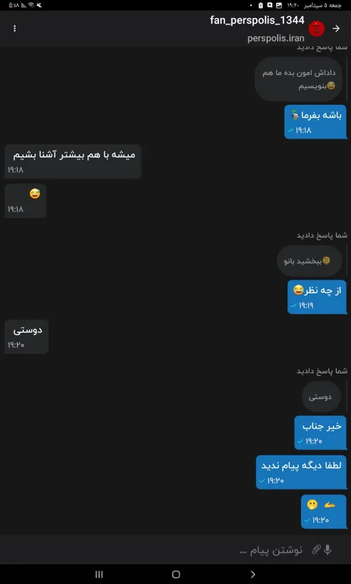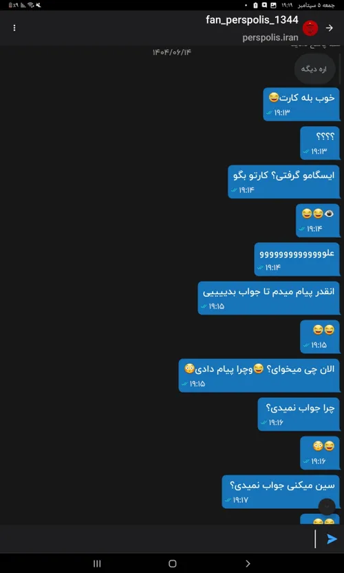 عجب ادمایی پیدا میشه😂این قبلش بم پیام داد بعد بش گفتم پسری😂https://wisgoon.com/perspolis.iran