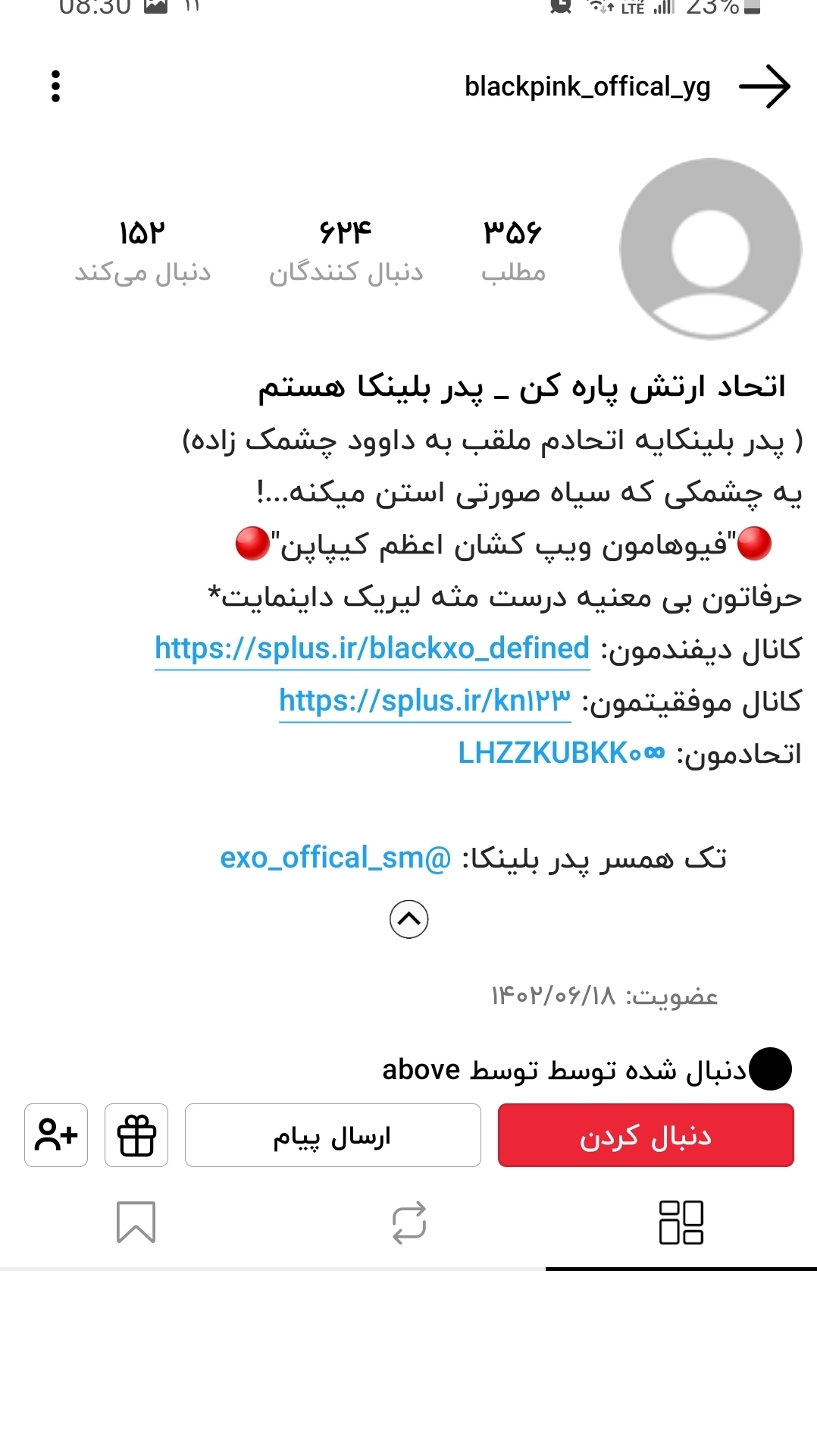 بچه ها آیدی این کص*کش رو پیدا نکردم ولی سعی کنید برید جرررشش بدید زیادی داره زرزرزرزر میکنه