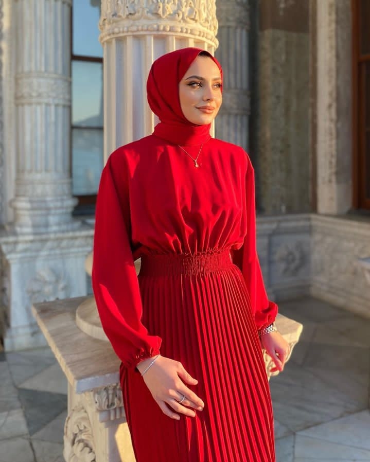 شهین خانم به جای لباس سفید، لباس قرمز در روز عروسی اش پوشیده است